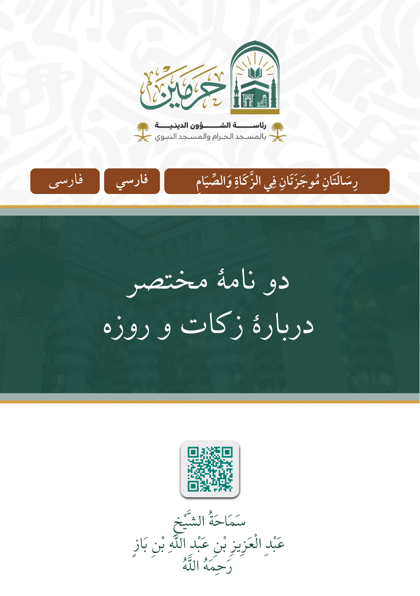 رسالتان موجزتان في الزكاة والصيام : هذا الكتيب يحتوي على رسالتين وهما: الرسالة الأولى : في بحوث هامة حول الزكاة. الرسالة الثانية : في فضل صيام رمضان وقيامه مع بيان أحكام مهمة قد تخفى على بعض الناس.
