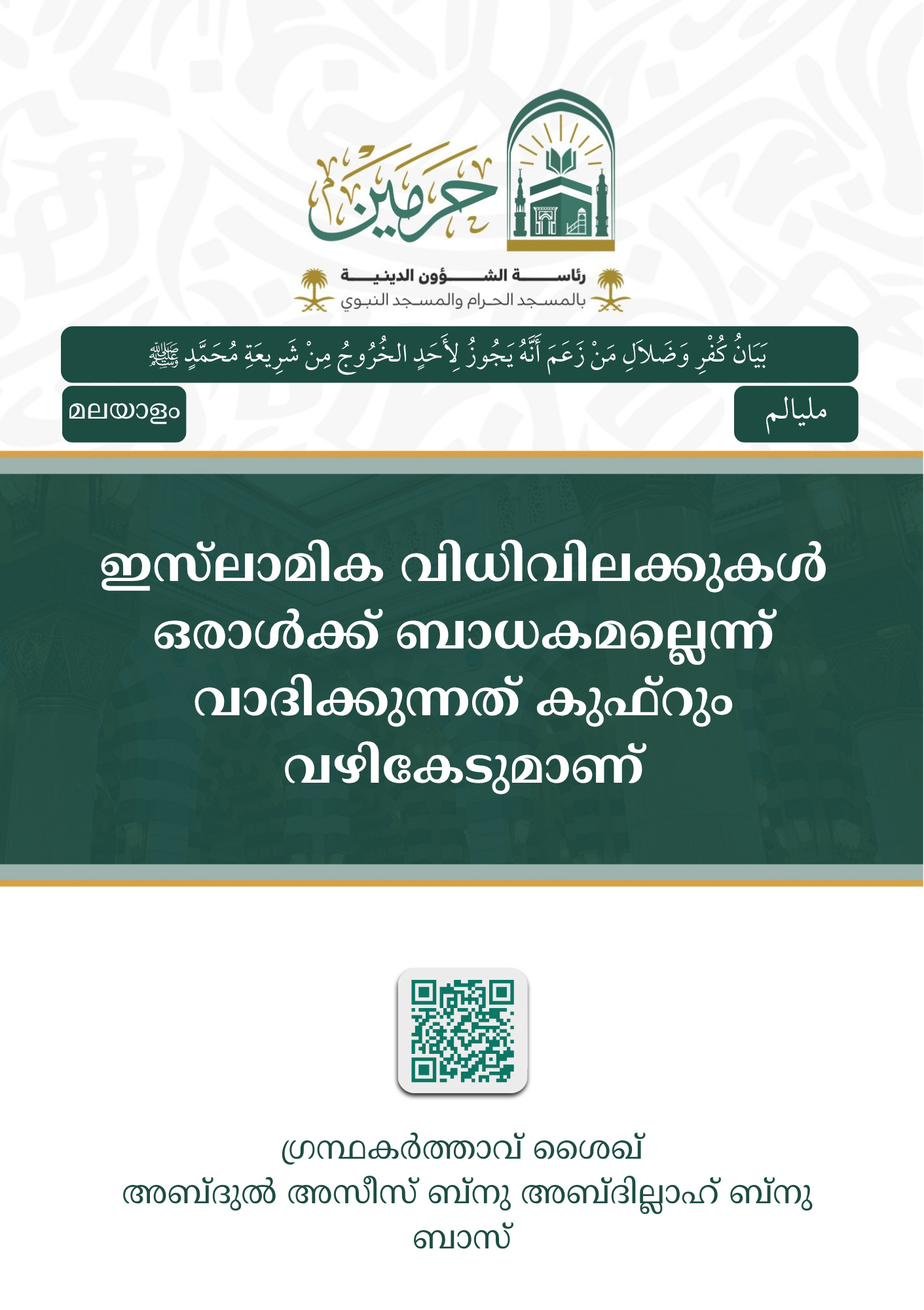 മുഹമ്മദ് നബി ﷺ പഠിപ്പിച്ച ഇസ്ലാമിക വിധിവിലക്കുകൾ ഒരാൾക്ക് ബാധകമല്ലെന്ന് വാദിക്കുന്നത് കുഫ്റും വഴികേടുമാണ്.