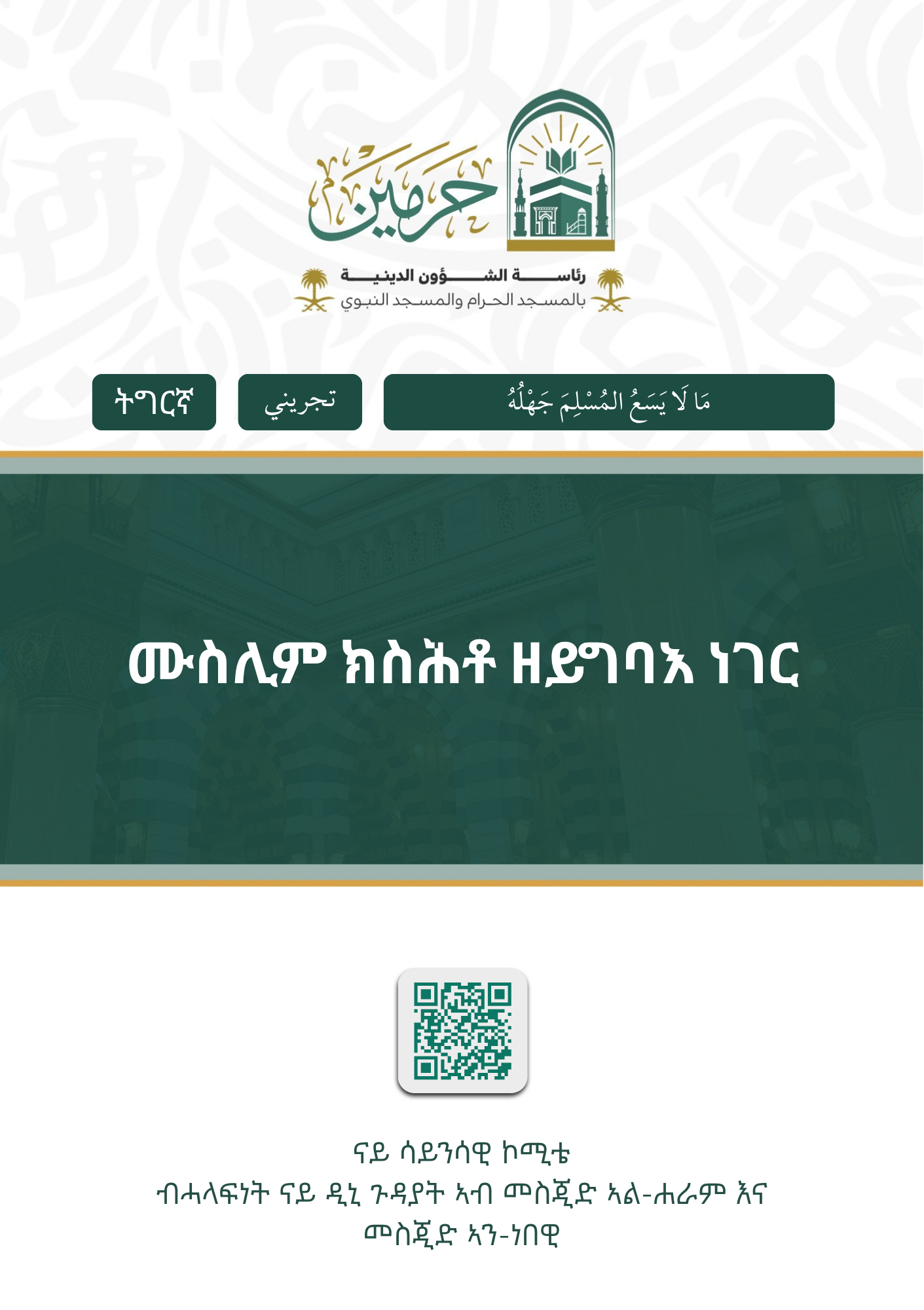 እዚኣ ሓጻር መልእኽቲ እምብኣር፡ሓደ ሙስሊም ኣብ ዓቒድኡን(እምነቱ)፡ ዒባዱኡን(ኣምልኾኡ) ከምኡ'ዉን ኣብ ማሕበራዊ ኣተሓሕዝኡ ዘድልይዎ ኣገደስቲ ነጥብታት ዘጠቓለለት ኢያ። ንበጻሕቲ እተን ክልተ ቅዱሳን ቦታታት (ሓረመይን) ደቂ ተባዕትዮን ደቂ ኣንስትዮን፡ ብዛዕባ ጉዳይ ሃይማኖቶም ንጹር ፍልጠትን መረዳእታን ምእንቲ ክህልዎም ኢልና ኣዳሊናያ። ካብ'ቲ ለጋስን ወሃብን ዝኾነ ኣላህ፡ቅንዕትን ንውልቁ ጥራይ እተሰርሐትን ጠቓሚት ክገብራ ንምነ።ንሱ ብሓቂ ዝበለጸ ዝሕተትን ዝለዓለ ተስፋ ዝግበረሉን ኢዩ።