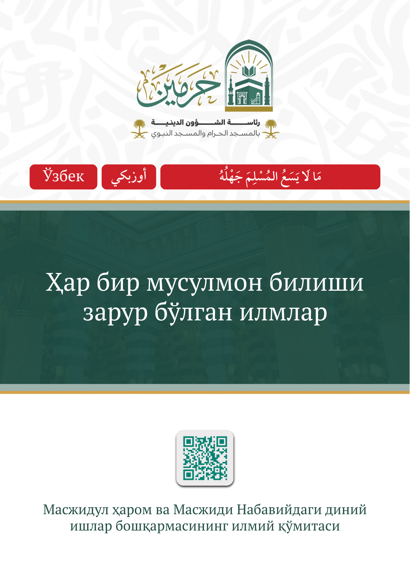 Қўлингиздаги ушбу рисола мусулмон киши ақидаси, ибодати ҳамда муомаласида муҳтож бўладиган энг муҳим илмларни ўз ичига олган. Бу рисолани икки "Ҳарами шарифнинг" зиёратчиларига атаб, улар ўз динлари ҳақида илм ва маърифатга эга бўлишлари учун жамладик. Карим ва Маннон Аллоҳ таолодан бу китобни фоидали, солиҳ амаллар қаторида қабул ва Ўзининг юзи учун холис қилишини сўраб қоламиз. Албатта, У сўралганларнинг энг яхшиси ва умид қилинганларнинг энг саҳийсидир.