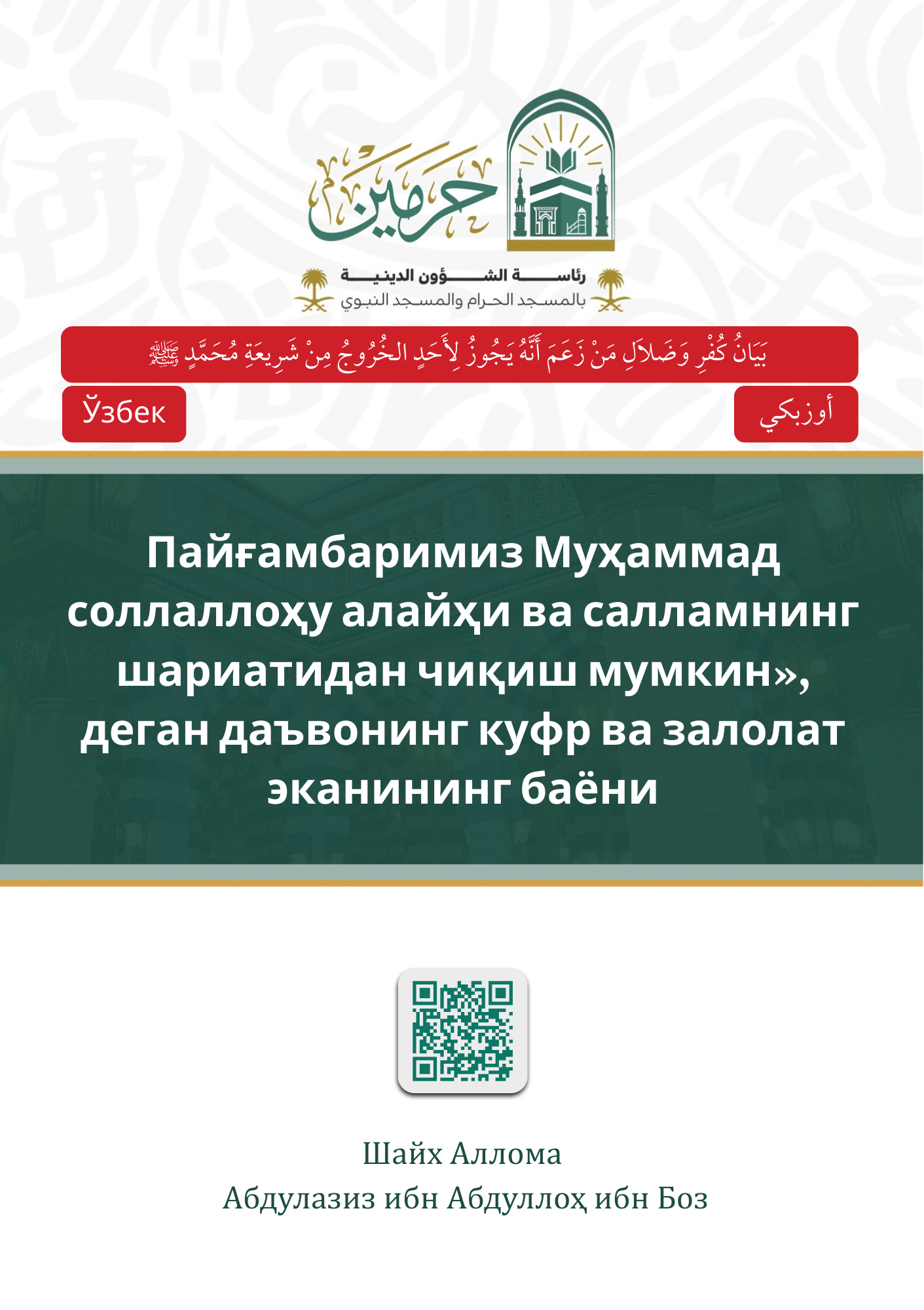 Пайғамбаримиз Муҳаммад соллаллоҳу алайҳи ва салламнинг шариатидан чиқиш мумкин», деган даъвонинг куфр ва залолат эканининг баёни (Ўзбек)